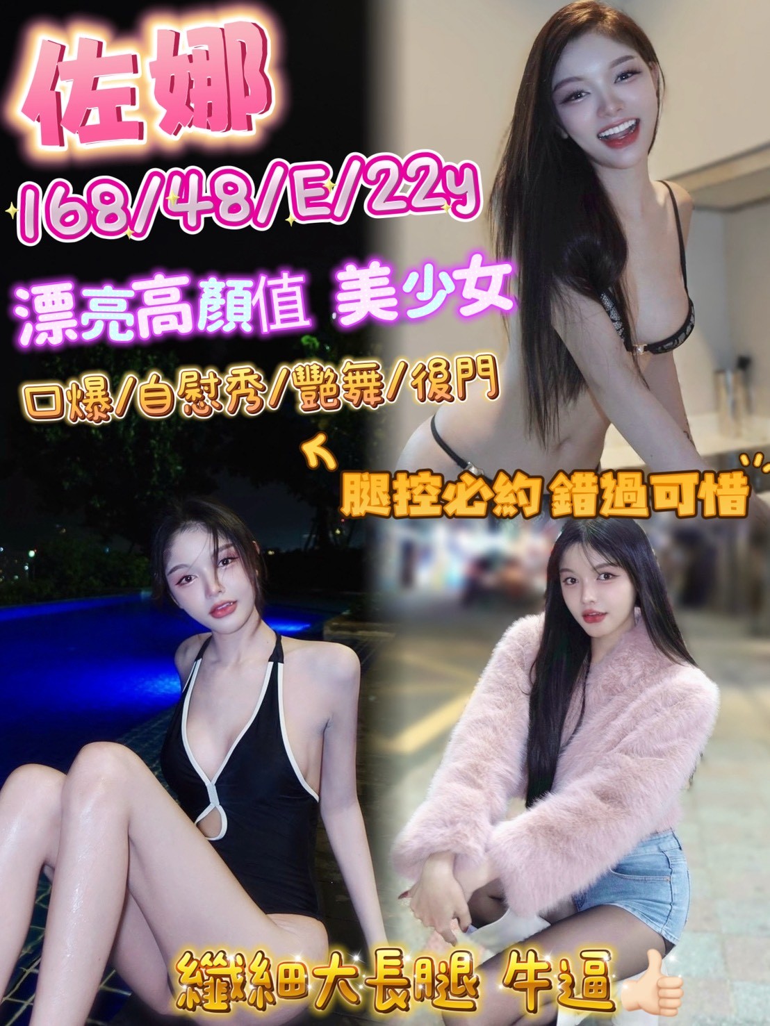 口爆+500/自慰秀+500/艷舞+500/後門+1000/絲襪+100
