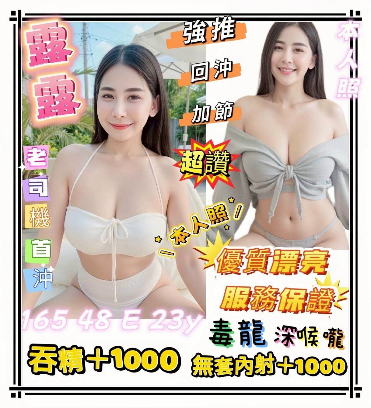 無套吹/戴套做/小親親/69/品鮑/吞蛋/舔蛋/奶炮/胸推/屁推/共浴/按摩