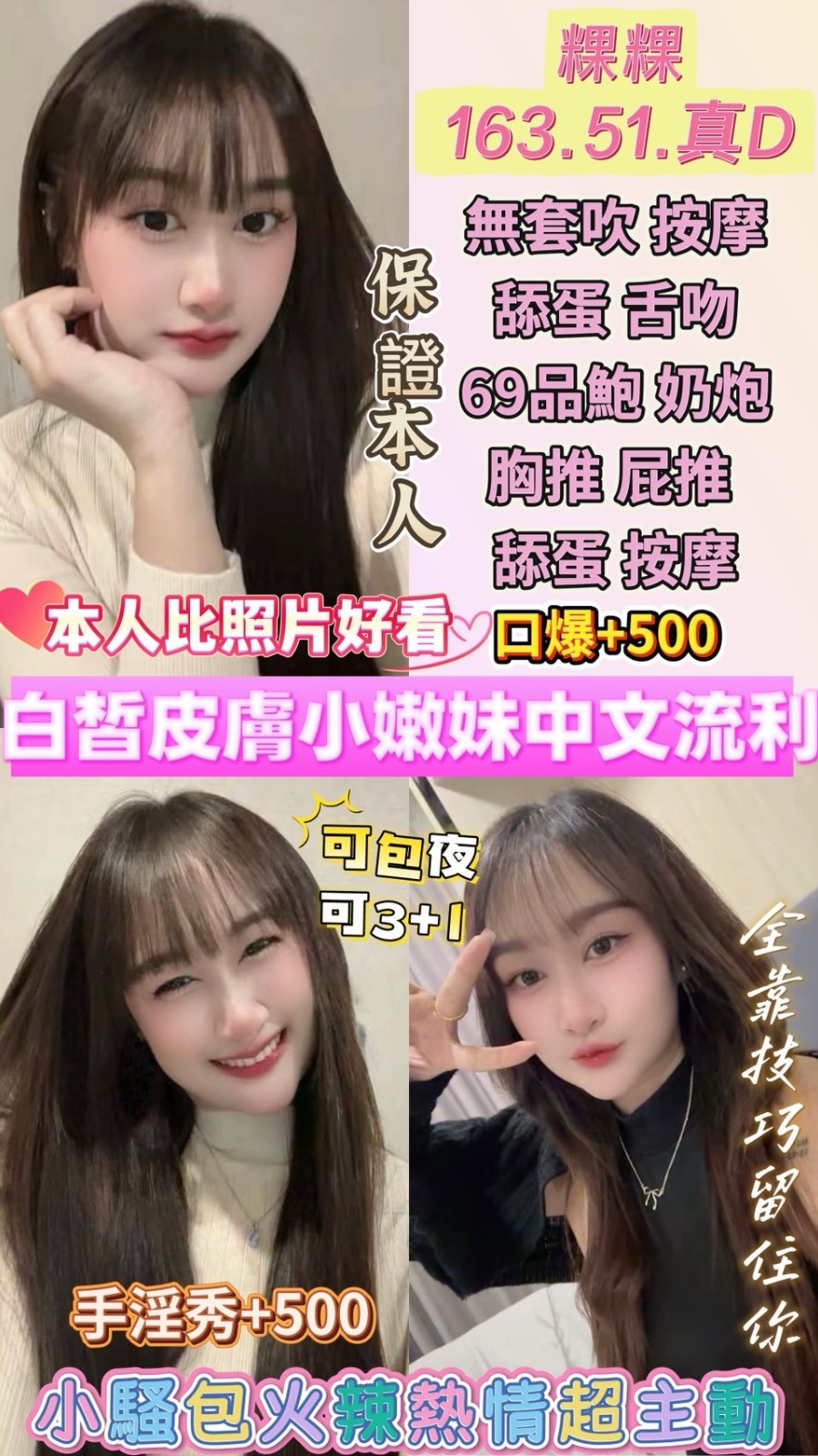 無套吹/甜蜜共浴/KISS(視感覺)/69品鮑/按摩/奶炮/胸推/屁推/免費射後清槍